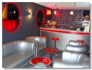 - Интерьер кинотеатра спроектирован итальянскими архитекторами. Посетителей обязательно заинтересует яркий дизайн фойе и мягкая зона отдыха у баров.