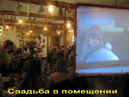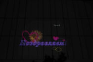 * Необычное поздравление: трансляция слайд-шоу с помощью проектора в помещении или на улице (на стене дома, на земле, на экране). Только представьте: когда стемнеет, вы ведёте именинника вместе с гостями на улицу и в этот момент во всю ширину дома перед их глазами возникает красочный, яркий видеоролик со звуком! Такая трансляция возможна везде, даже на природе, ведь оборудование не нуждается в подключении к сети.